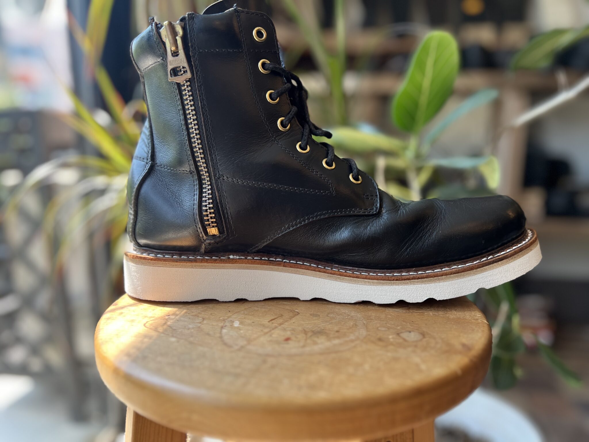 黒桟革 【極】オーダーショートブーツ/ クロザンガワ【ヴィンテージスチール 】 靴修理専門店AMOLIR