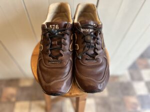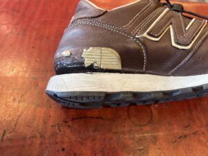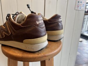 今回は、ニューバランス576のヒールプラスチック部分がボロボロになってしまったので本革で製作し直しいたしました。