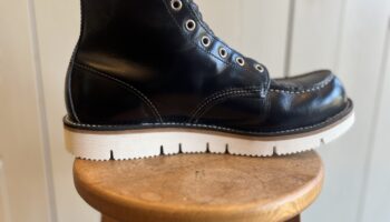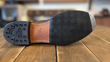 新品の革靴は、革の反り返り(履き癖)が無い状態のため、革底のつま先部分が通常より早く削れやすくなっています。
